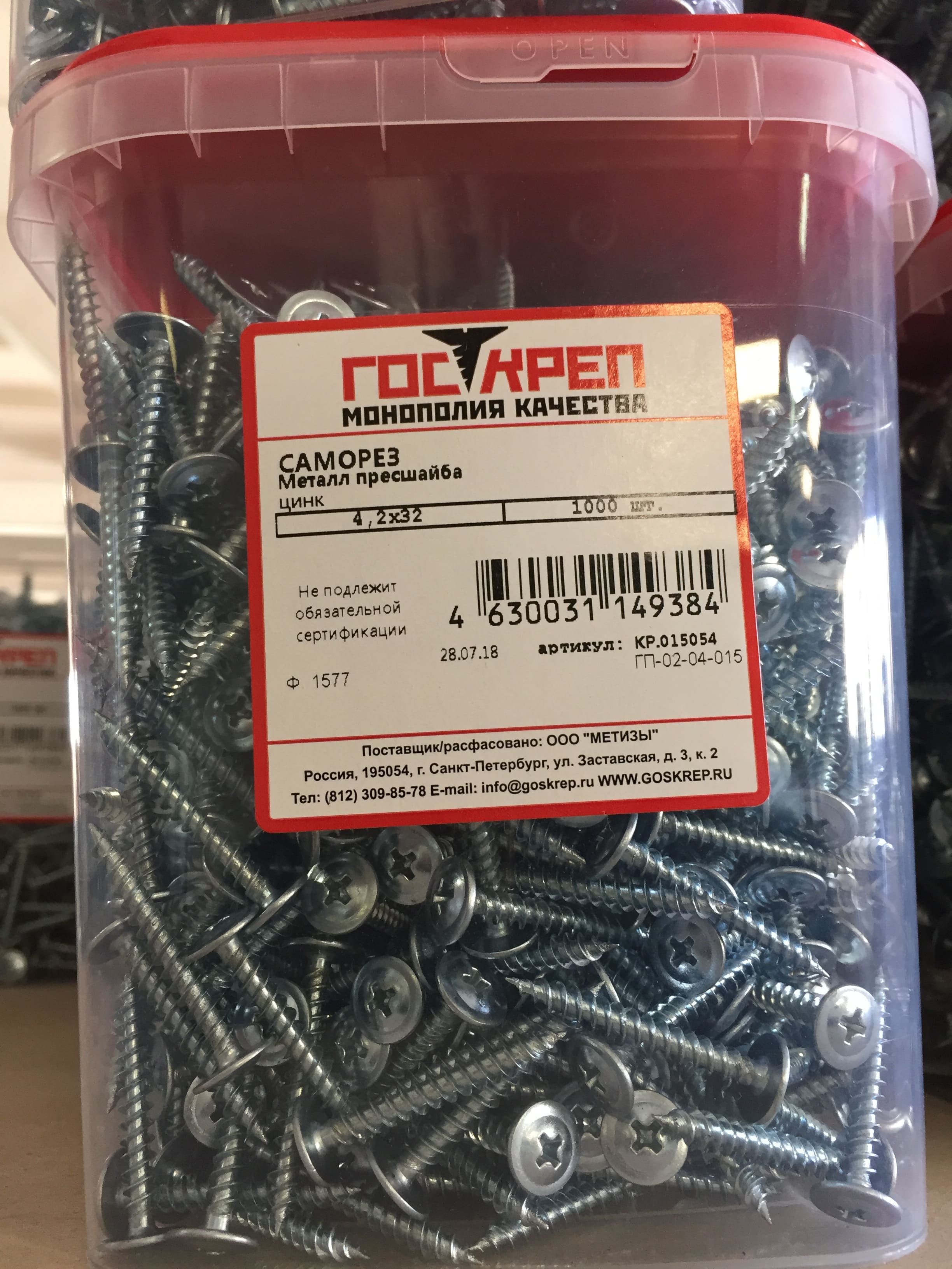 Пример фасованного крепежа Саморез с прессшайбой 4,2х32 в Крупный контейнер (1 000 шт)
