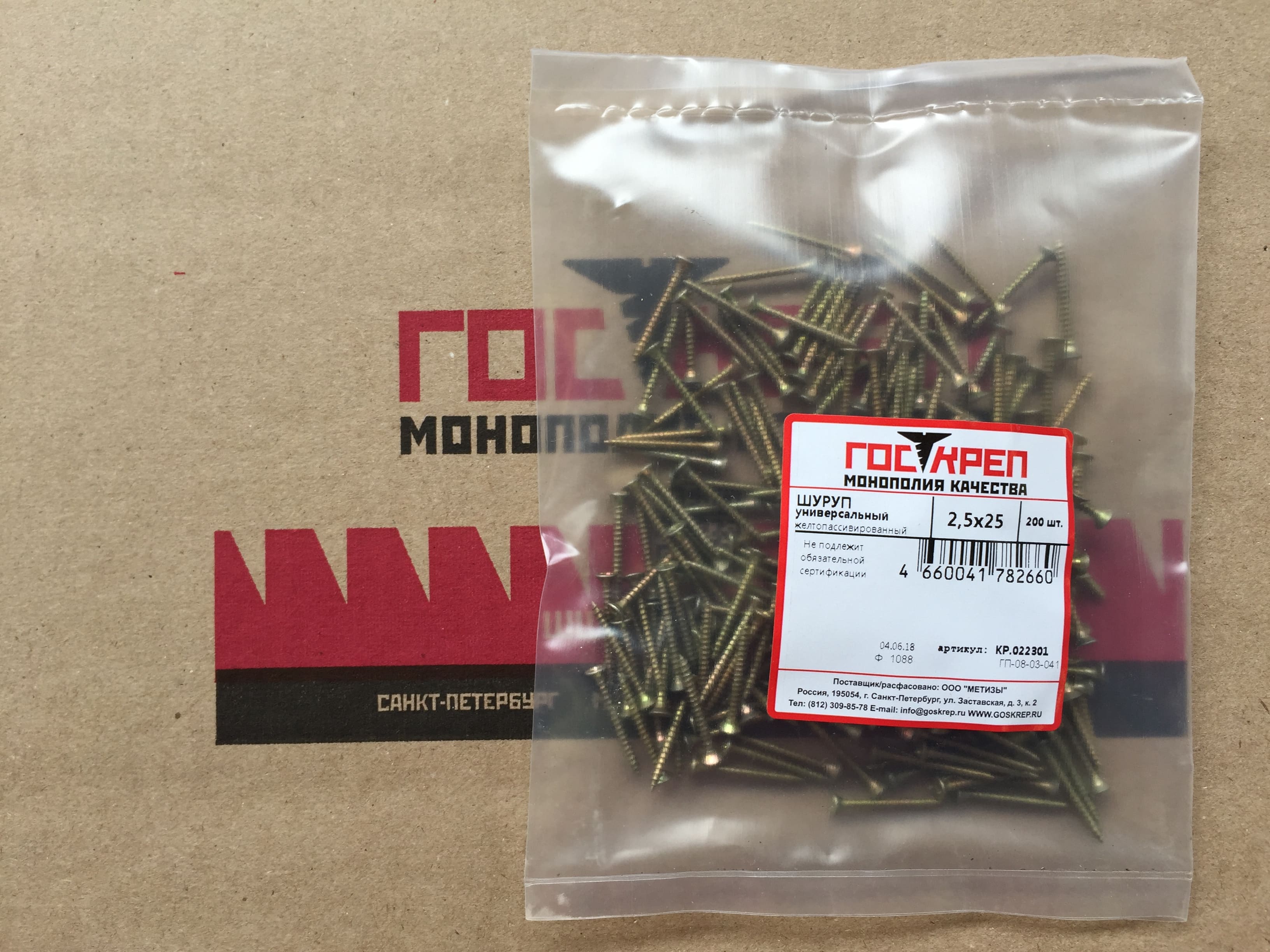 Пример фасованного крепежа ШУЖ 2,5х25 в Средний пакет (200 шт)
