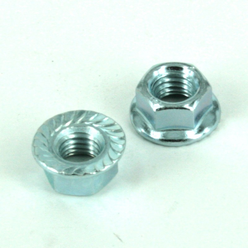 Конструктивно гайка DIN 6923 представляет собой гибрид гайки и шайбы с некоторым дополнением. Фланец-шайба имеет плоскую поверхность, на нижней кромке которой нанесены зубцы. Они расположены по ходу закручивания гайки и за счет силы трения предотвращают самораскручивание соединения в узле во время эксплуатации.