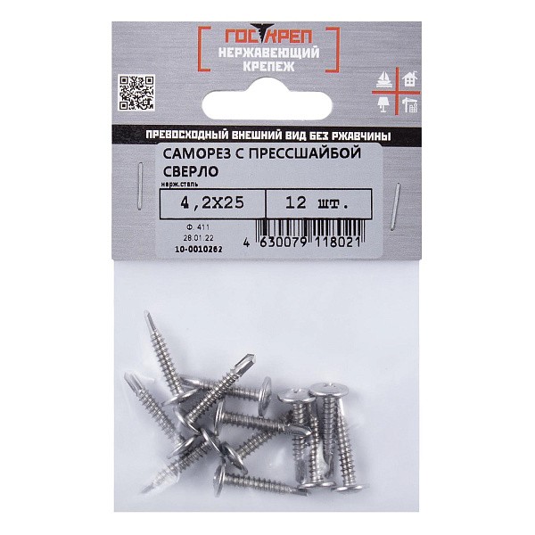 Саморез с пресс-шайбой сверло, нерж A2, 4,2x25