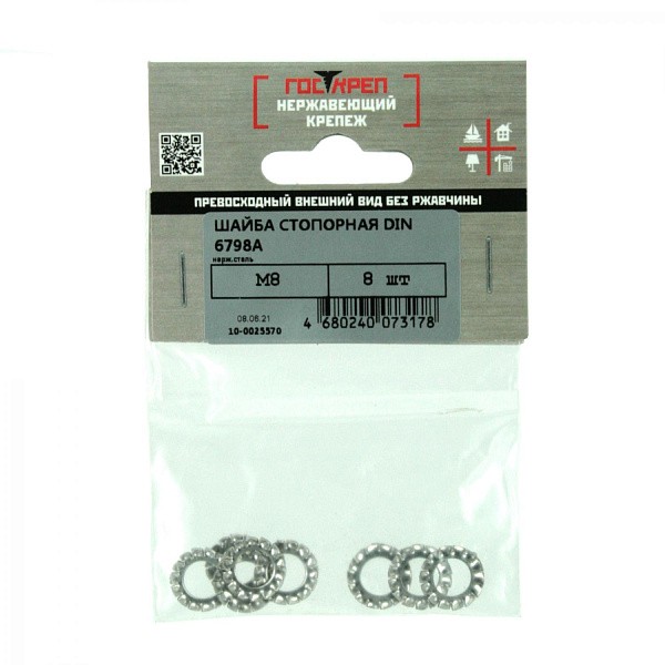 Шайба стопор. DIN 6798 A наруж. зуб, нерж A2, М8
