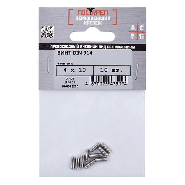 Винт DIN 914 установ. внутр.шестигран./острокон. A2, М4x10