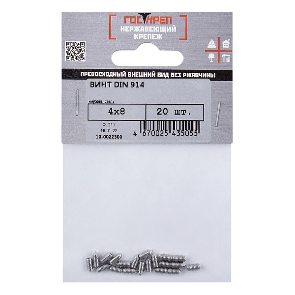 Винт DIN 914 установ. внутр.шестигран./острокон. A2, М4x8