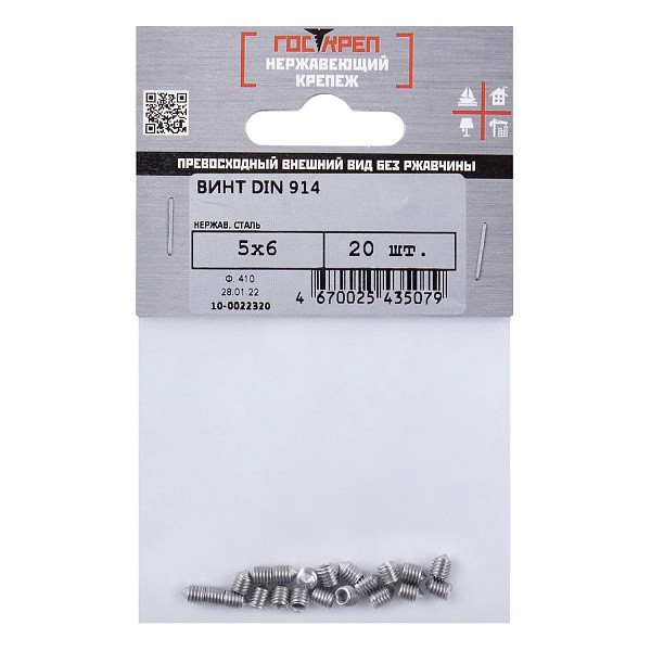 Винт DIN 914 установ. внутр.шестигран./острокон. A2, М5x6