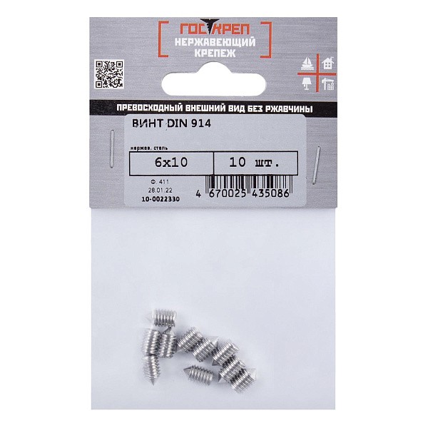 Винт DIN 914 установ. внутр.шестигран./острокон. A2, М6x10
