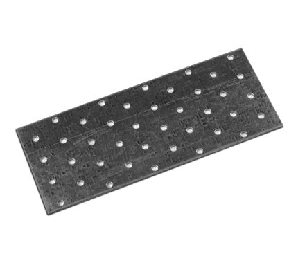 Соединительные пластины отличаются широкой линейкой размеров, от 40 до 200 мм в ширину и диапазоном длины 80-1250 мм, и равномерно распределенными отверстиям одного диаметра 5 мм.