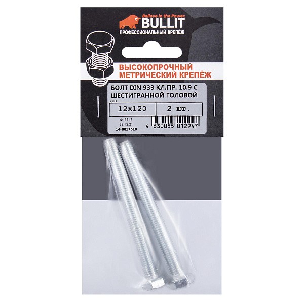 Болт DIN 933 кл.пр. 10.9 с шестигранной головой M12x120