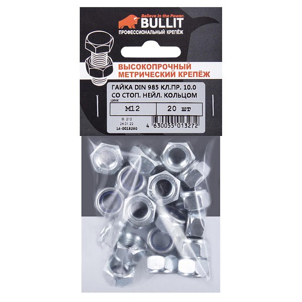 Гайка DIN 985 кл.пр.10 шестигранная самоконтрящаяся низкая M12