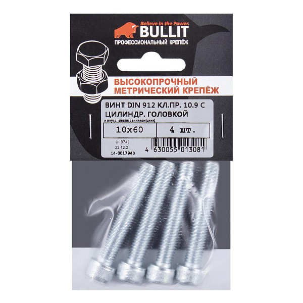 Винт DIN 912 кл.пр.10.9 с цилин. головкой и внутр. шестигр. M10x60