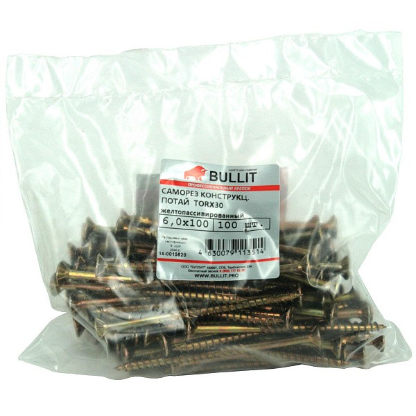 Саморез конструкц.универсал Bullit 5х70 желт.,потай TX25