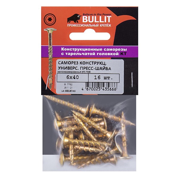Саморез конструкц.универсальный Bullit 6х40 желт.,пресс-шайба TX30