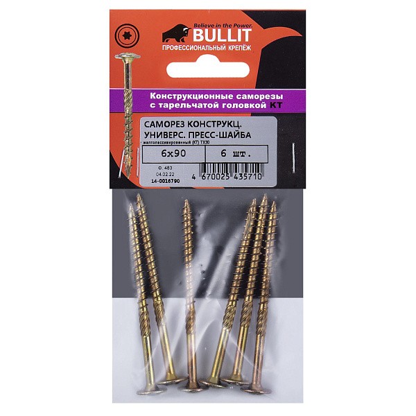 Саморез конструкц.универсальный Bullit 6х90 желт.,пресс-шайба TX30