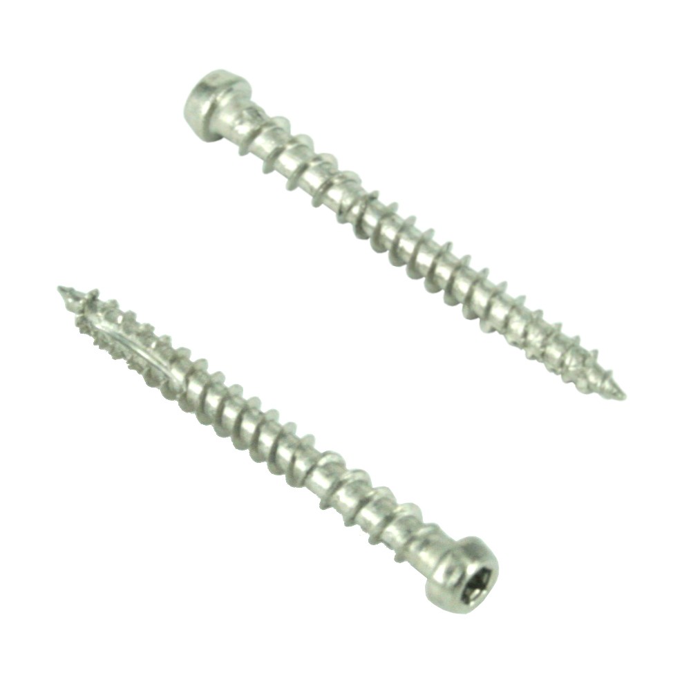 Нержавеющие саморезы STN предназначены для монтажа террасной доски как посредством «классического» сквозного привинчивания половиц, так и для монтажа террасной доски с закрытием шурупов чопиками