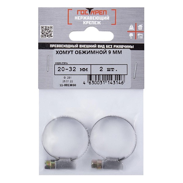 Хомут обжимной червячный нерж. 20-32 мм