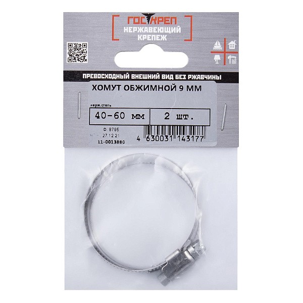 Хомут обжимной червячный нерж. 40-60 мм