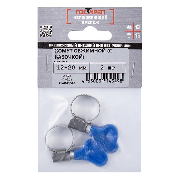 Хомут обжимной нерж. с бабочкой, 12-20 мм