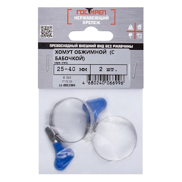 Хомут обжимной нерж. с бабочкой, 25-40 мм