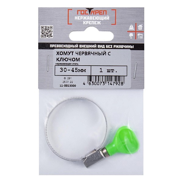 Хомут обжимной нерж. с бабочкой, 30-45 мм