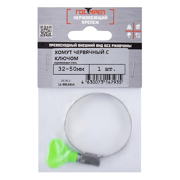 Хомут обжимной нерж. с бабочкой, 32-50 мм