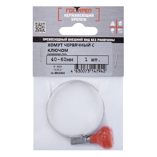 Хомут обжимной нерж. с бабочкой, 40-60 мм