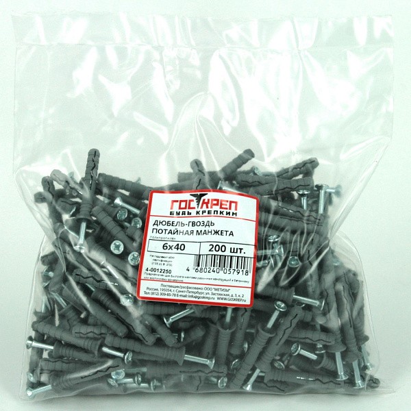Дюбель-гвоздь полипропилен, 6x80 потай манжета