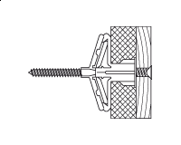 Дюбель-бабочка в листовом материале раскрывается с обратной стороны листа, создавая, так называемый, внешний упор только в том случае, если толщина листа не превышает 26 мм. Манжета дюбеля препятствует продавливанию дюбеля в материал.