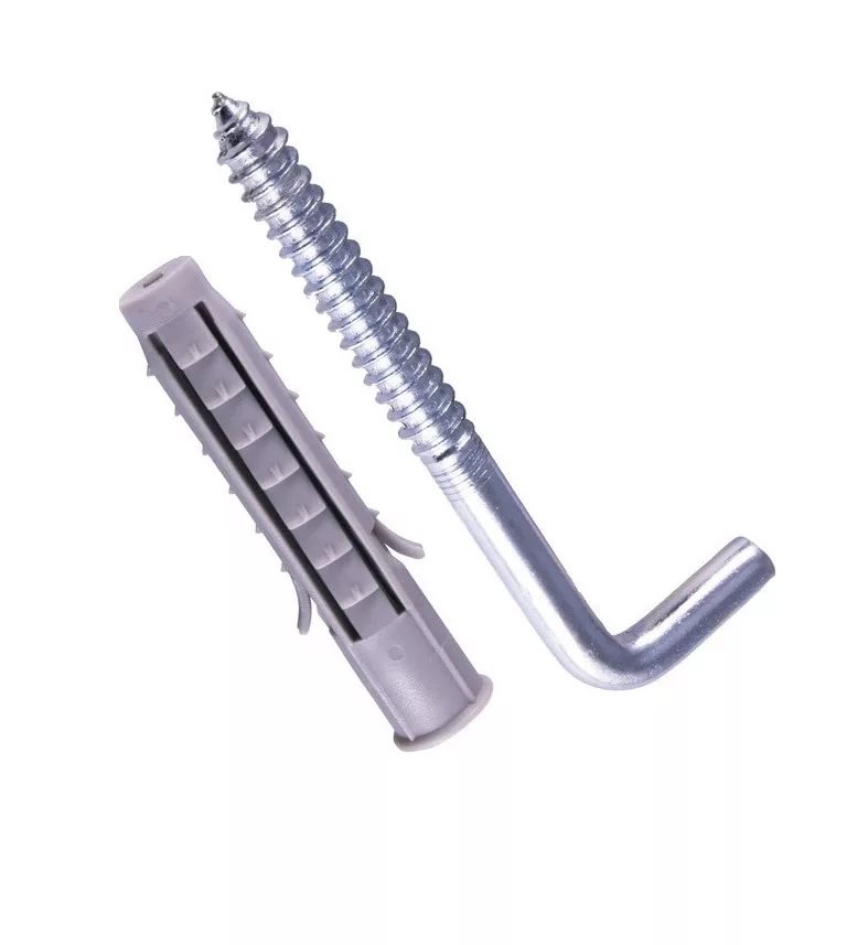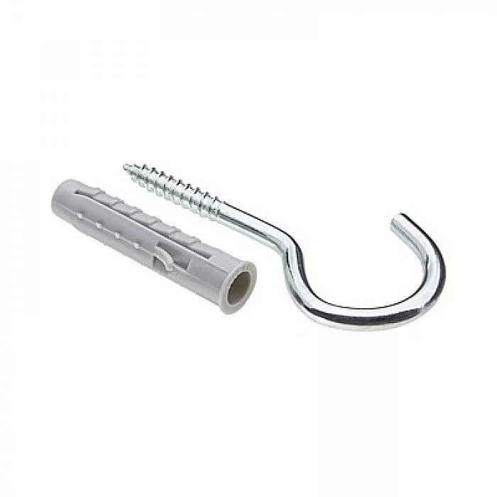 Дюбель с прямым крюком или полукольцом — это крепежное изделие, предназначенное для закрепления каких-либо объектов в полнотелых материалах, к примеру, кирпичных или бетонных стенах. Данный крепеж представляет собой составную конструкцию, состоящую из двух элементов: