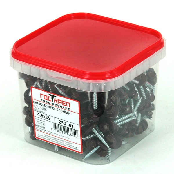 Саморез кровельный, RAL 3005 (винно-красный), 4,8x51