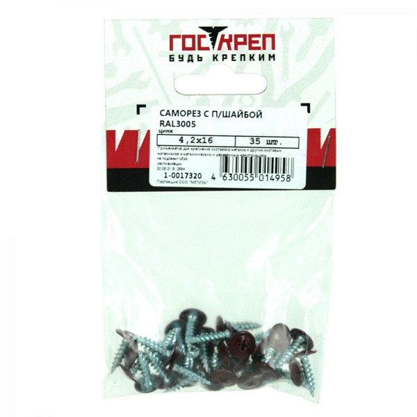 Саморез с прессшайбой, RAL 3005 (винно-красный), 4,2х19