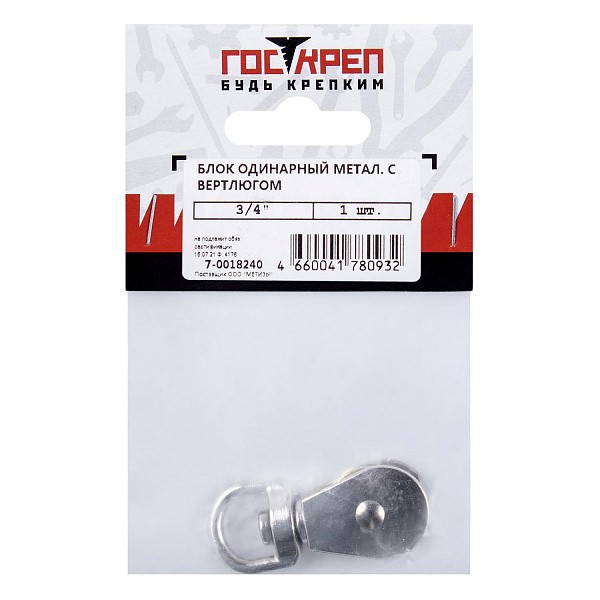 Блок одинарный металл. с вертлюгом 3/4" (20 мм)