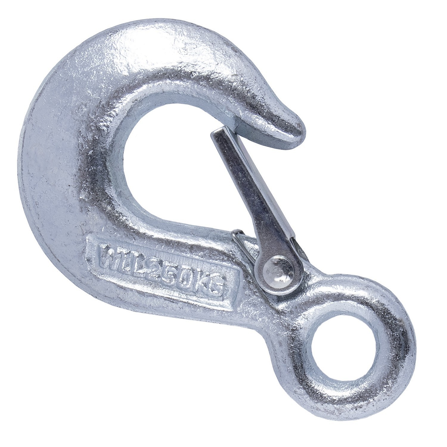 Крюк DIN 689 имеет кольцо и предохранитель, который препятствует самораскрытию крюка. Размеры 250 кг и 500 кг - наиболее продаваемые для бытового назначения и для решения в строительно-монтажных конструкциях.