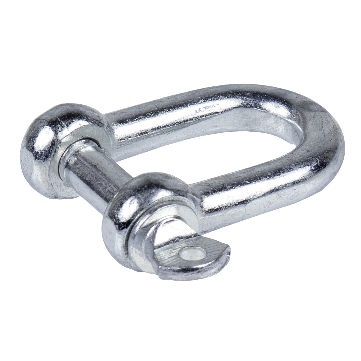 Соединение через скобу такелажную (шакл) считают одним из самых надежных. Фиксация выполняется двумя способами затвора: винтом или болт-гайка-шплинт. Винтовая конструкция уступает в надежности, но ее устанавливать и демонтировать быстрее. Такие скобы такелажные применяют в регулярном использовании из-за быстрой фиксации, то есть на временных конструкциях или с частным раскрытием.